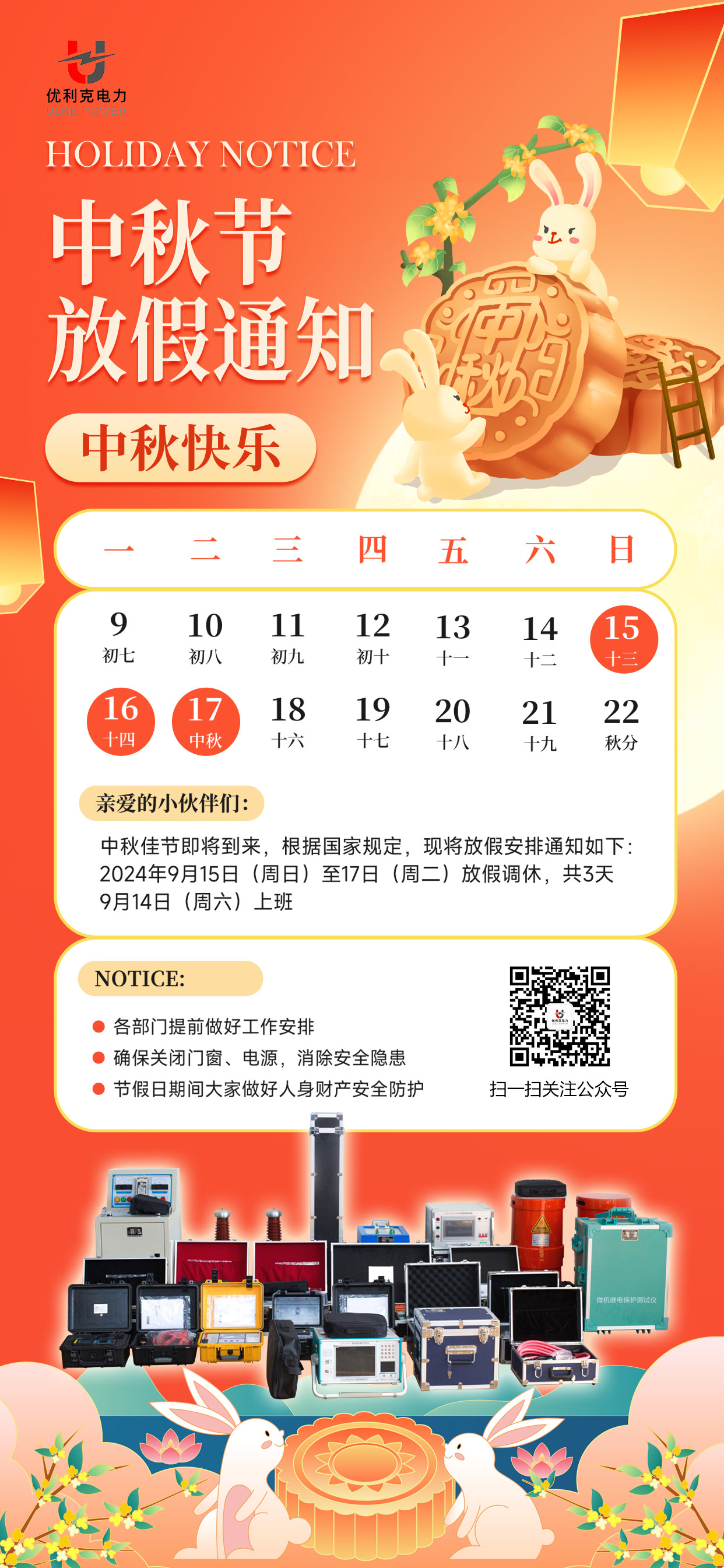 優利克電力2024中秋節放假通知發布: 2024-09-12  瀏覽: 332 次