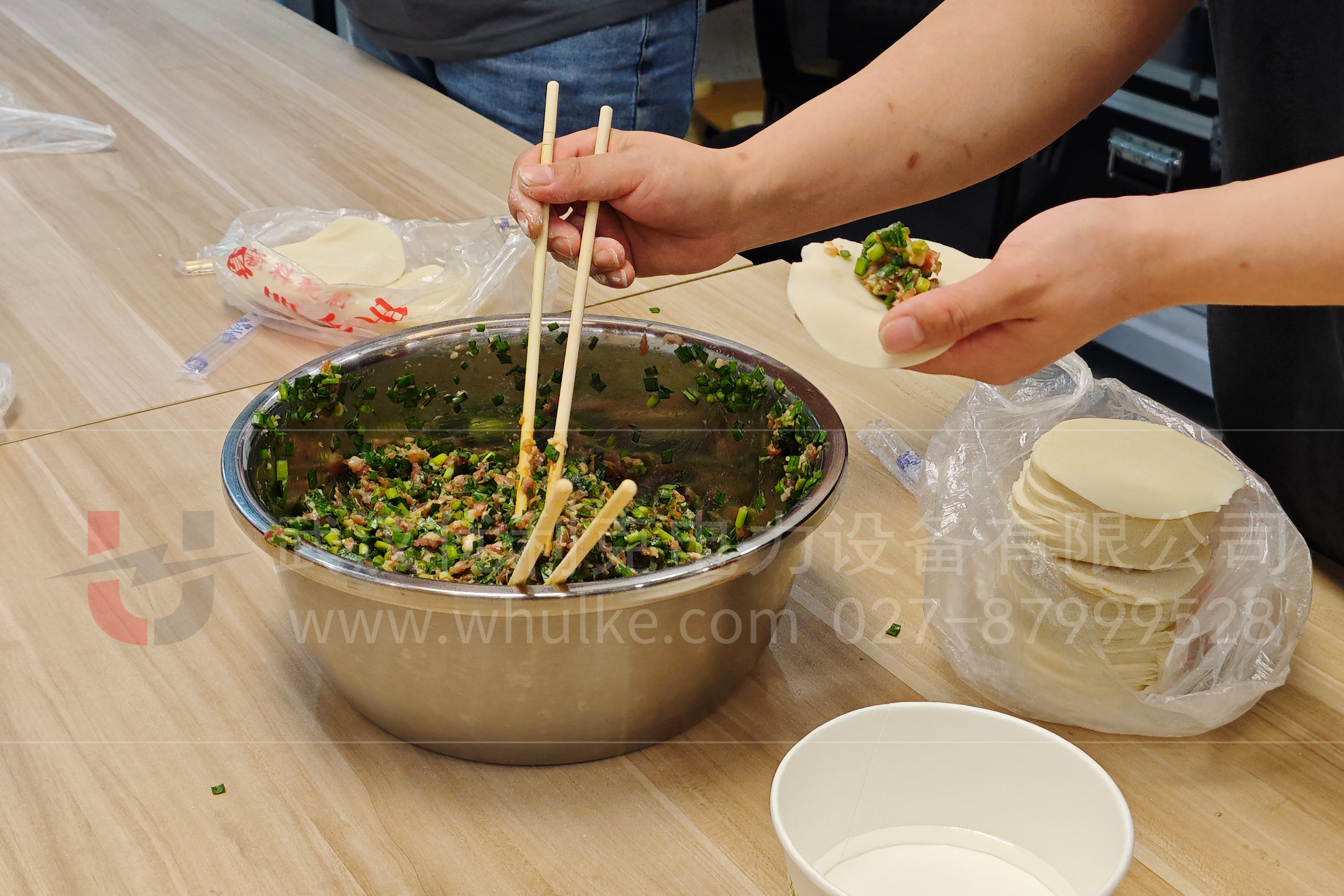 的肉餡,散發(fā)著誘人的香氣。員工們陸續(xù)來(lái)到現(xiàn)場(chǎng),大家紛紛擼起袖子,迫不及待地加入這場(chǎng) “餃香盛宴”。?