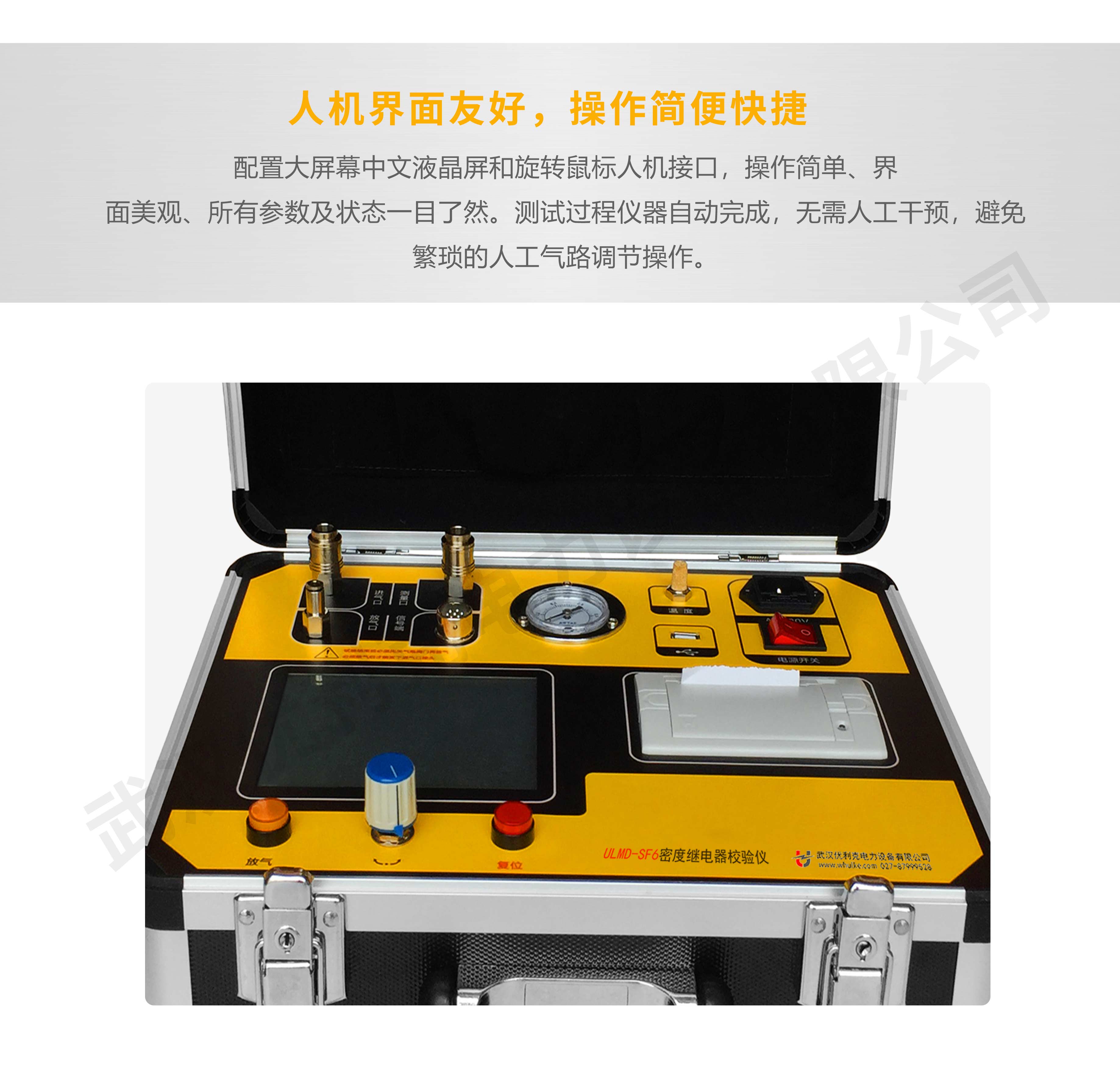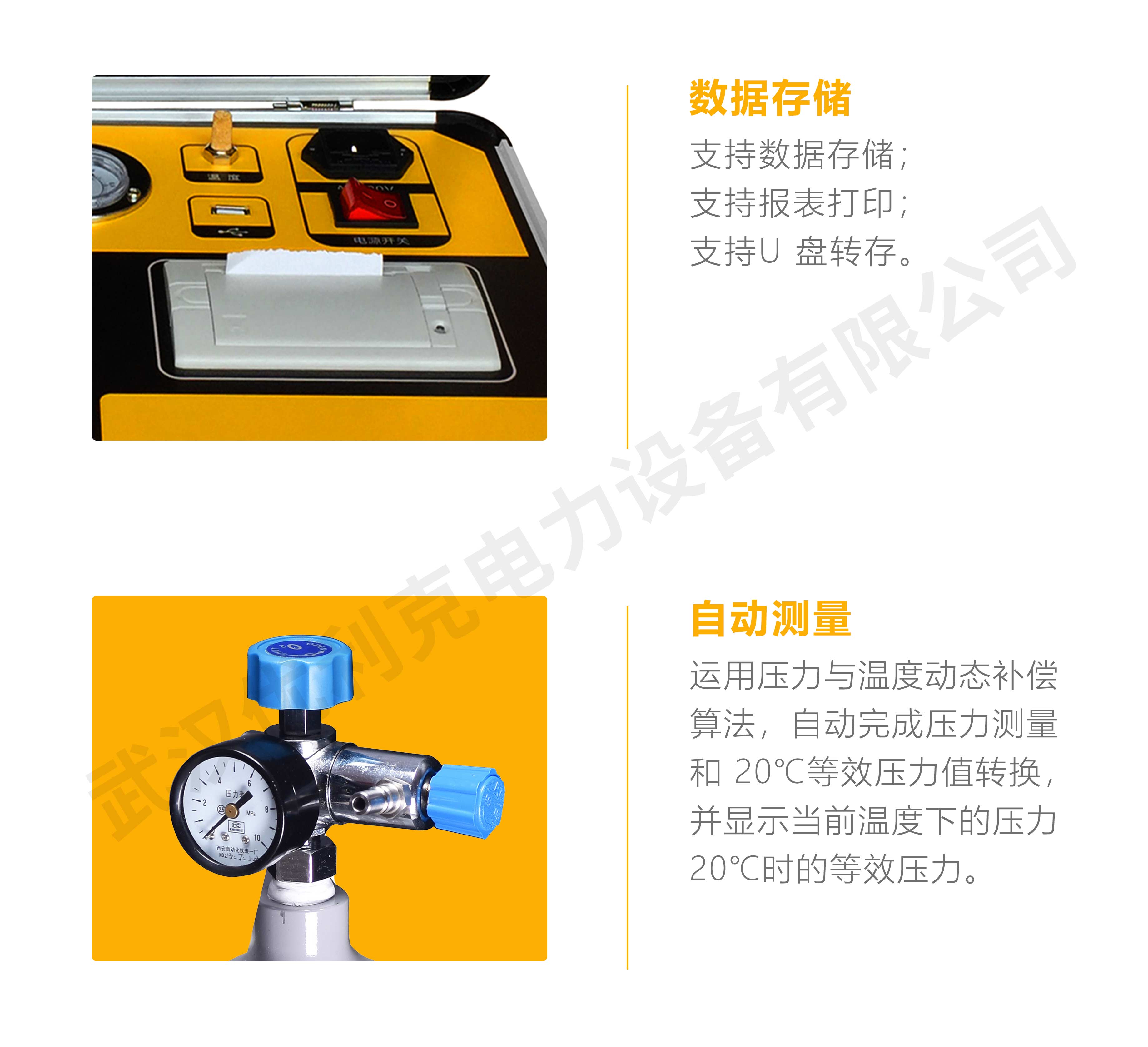 2、高度智能化:校驗(yàn)過程無需恒溫室,在任意有效溫度范圍內(nèi)均可對(duì) SF6 氣體密度繼電器、壓力表進(jìn)行校驗(yàn)。運(yùn)用壓力與溫度動(dòng)態(tài)補(bǔ)償算法,自動(dòng)完成壓力測量和 20℃等效壓力值轉(zhuǎn)換,并顯示當(dāng)前溫度下的壓力、20℃時(shí)的等效壓力,徹底解決 SF6 氣體密度繼電器現(xiàn)場校驗(yàn)難的難題。