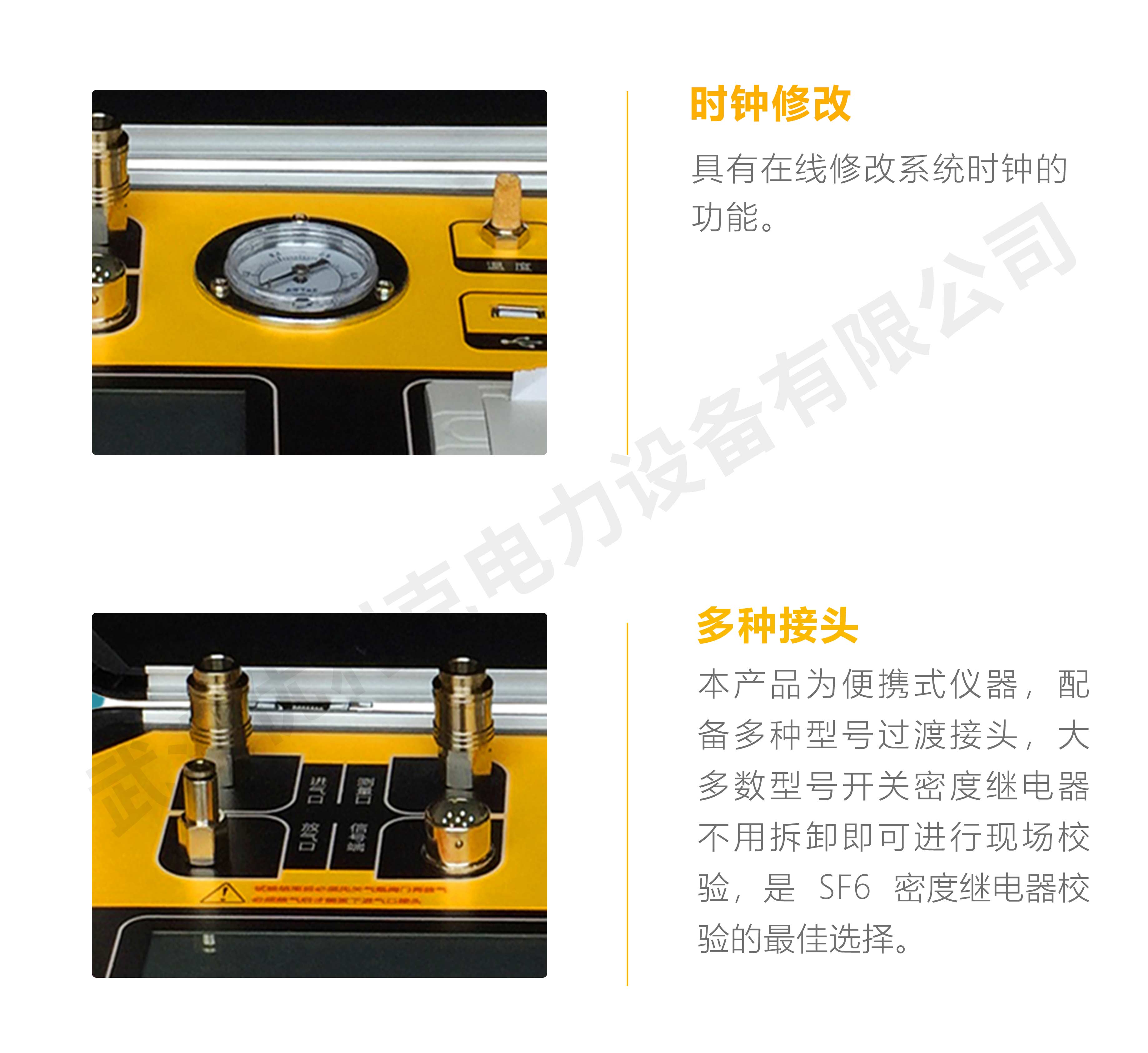 5、配套過渡接頭全:本產(chǎn)品為便攜式儀器,配備多種型號(hào)過渡接頭,大多數(shù)型號(hào)開關(guān)密度繼電器不用拆卸即可進(jìn)行現(xiàn)場校驗(yàn),是 SF6 密度繼電器校驗(yàn)的最佳選擇。