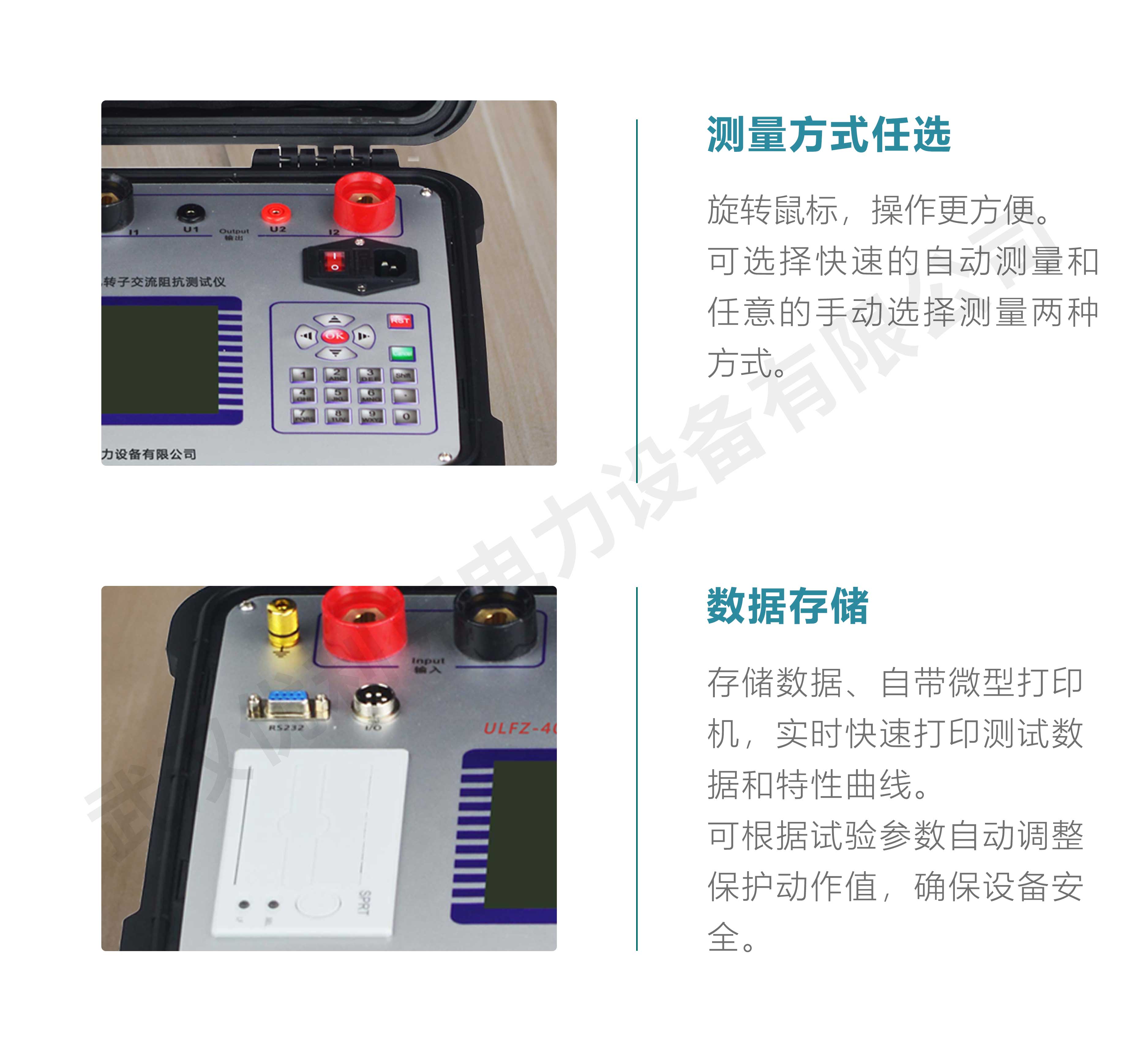 可選擇快速的自動測量和任意的手動選擇測量兩種方式;存儲數據、自帶微型打印機,實時快速打印測試數據和特性曲線