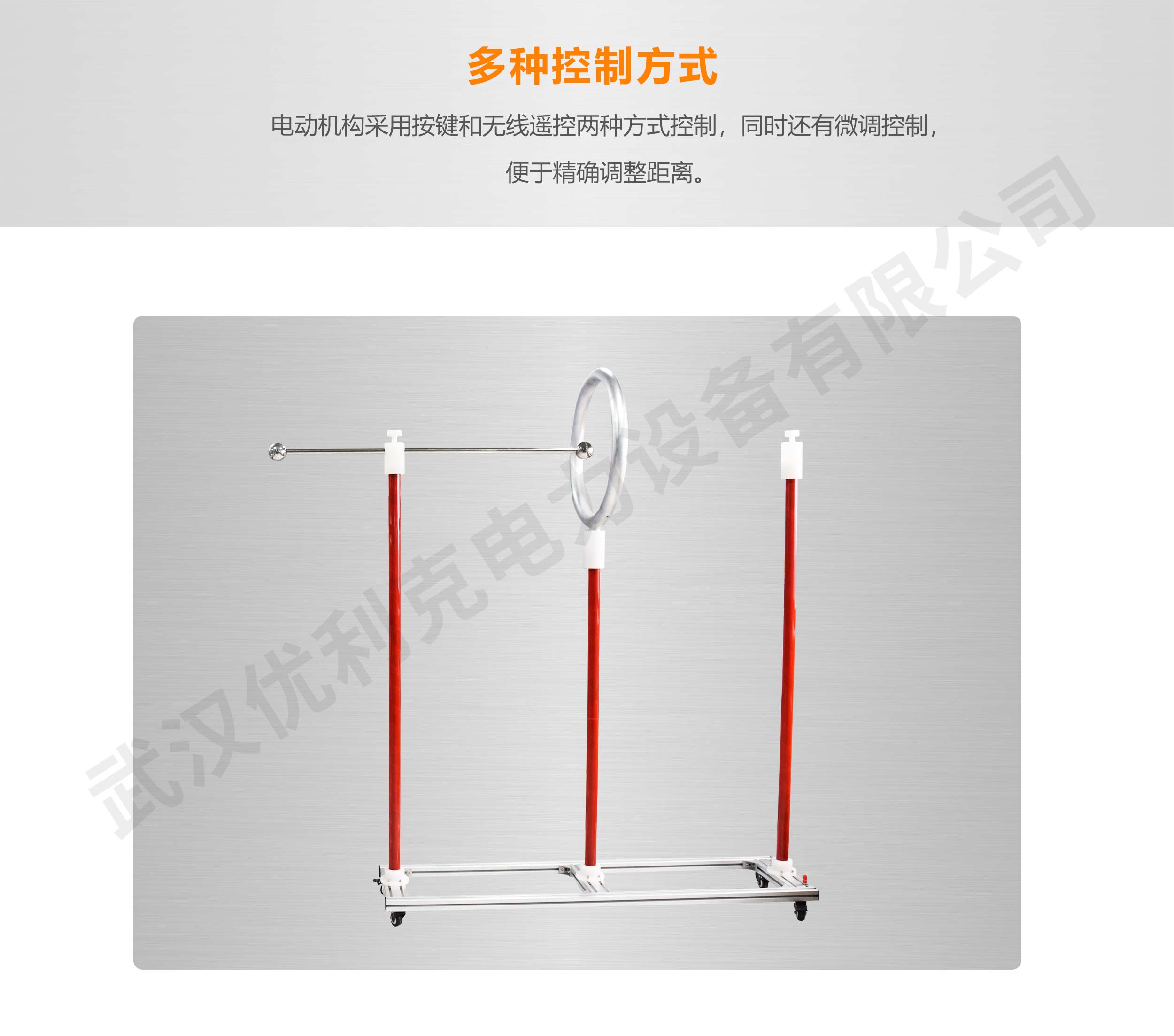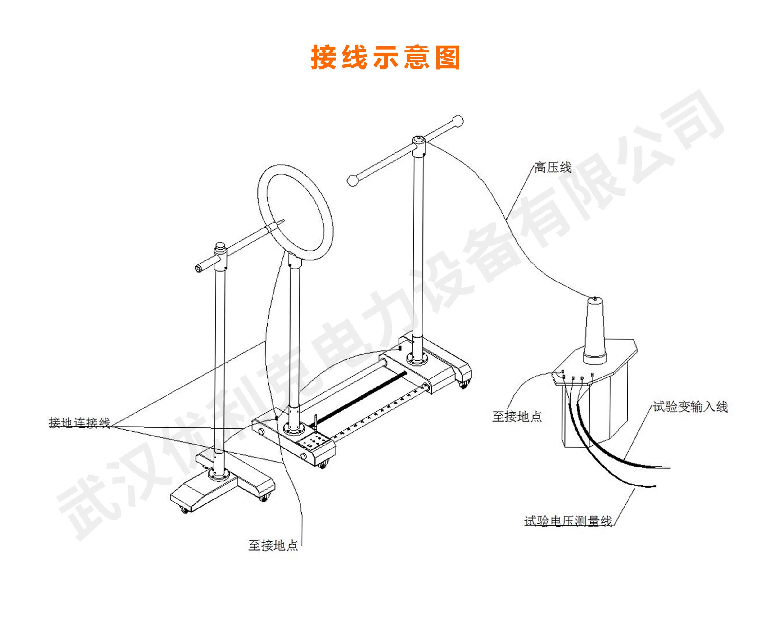 1、驗電器測試臺高壓電極為球形,接地電極為環(huán)形結(jié)構(gòu)。