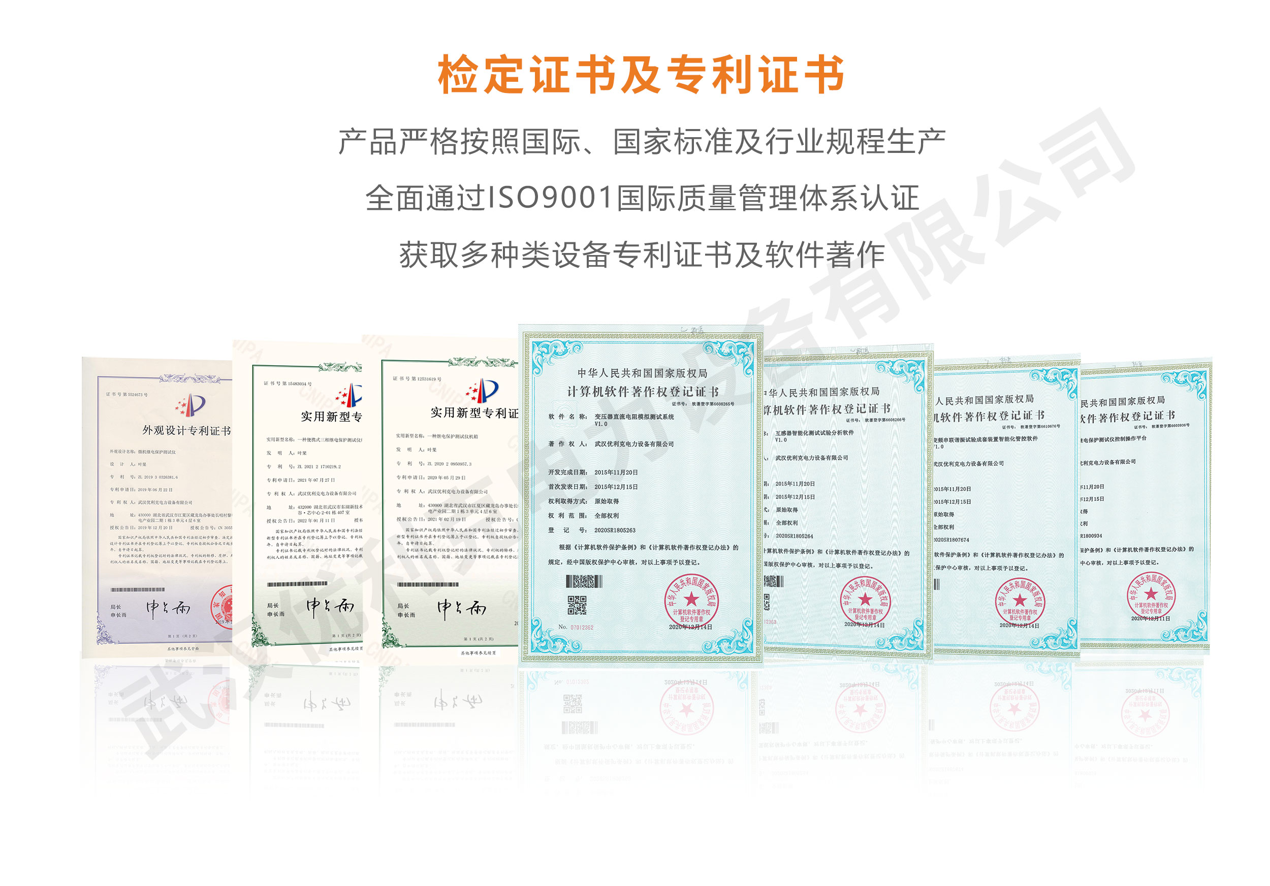 企業(yè)產品嚴格按照國際、國家標準及行業(yè)規(guī)程生產,通過國家、各省級、市級電力研究所、計量中心及電力權威部門的檢測,全面通過ISO9001國際質量管理體系認證、中華人民共和國制造計量器具許可證、GB/T19001-2016質量管理體系要求、GB/T24001-2016環(huán)境管理體系要求、GB/T45001-2020職業(yè)健康安全管理體系要求。