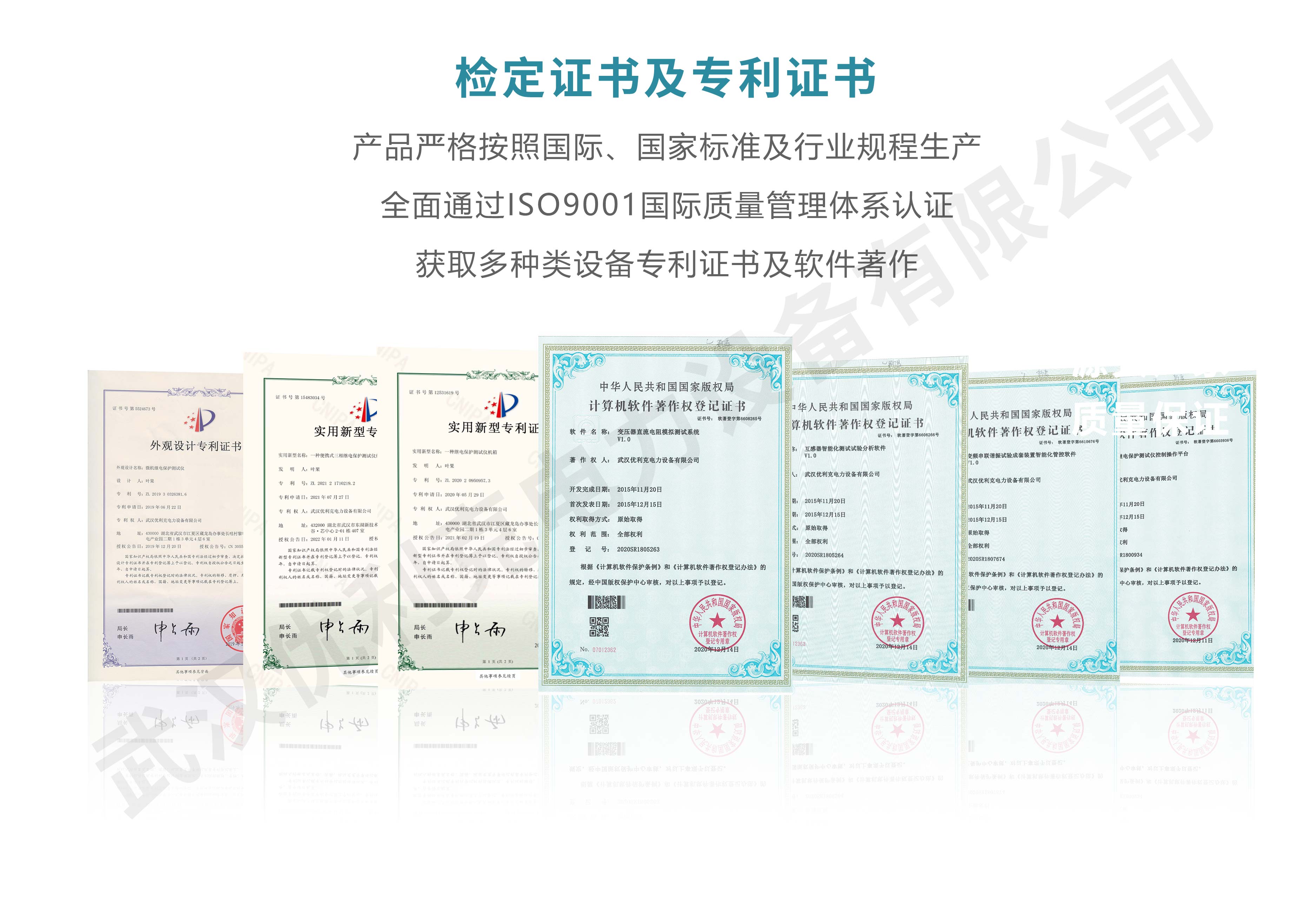 企業(yè)產品嚴格按照國際、國家標準及行業(yè)規(guī)程生產,通過國家、各省級、市級電力研究所、計量中心及電力權威部門的檢測,全面通過ISO9001國際質量管理體系認證、中華人民共和國制造計量器具許可證、GB/T19001-2016質量管理體系要求、GB/T24001-2016環(huán)境管理體系要求、GB/T45001-2020職業(yè)健康安全管理體系要求。