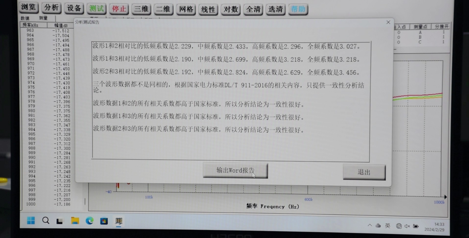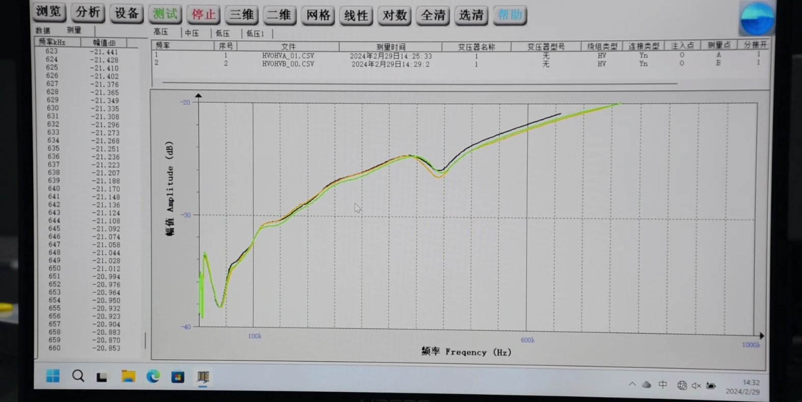 三相繞組間對比:將三相繞組的頻響曲線繪制在同一坐標系中,對比其形狀和幅值。正常情況下,三相繞組的頻響曲線應具有相似的